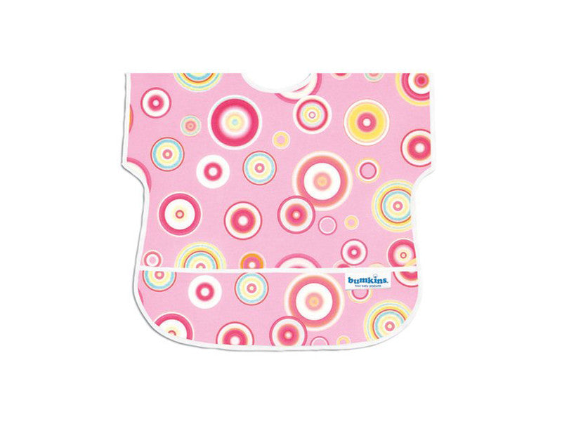 Bumkins top to selling waterproof bibs are made from a soft, lightweight fabric that is truly unique. These bibs come in a variety of fun, lively patterns that stay bright, wash after wash. Clean up has never been easier, bibs wipe clean, rinse off easily, and resist most stains and odors. This full coverage bib features a catch all pocket and tie closure. Measures 13.5" across chest, 12.5" from neck down, 32" cuff to cuff. This bib is generously sized to fit 6 months to 2 years. It is machine washable, lead safe, and free from PVC,BPA, phthalates and vinyl.